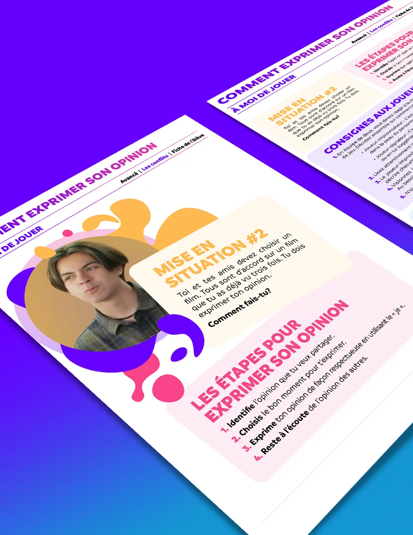 L’activité de jeu de rôle consiste à mettre en scène plusieurs scénarios en lien avec la leçon vidéo et à utiliser les étapes indiquées sur la fiche.